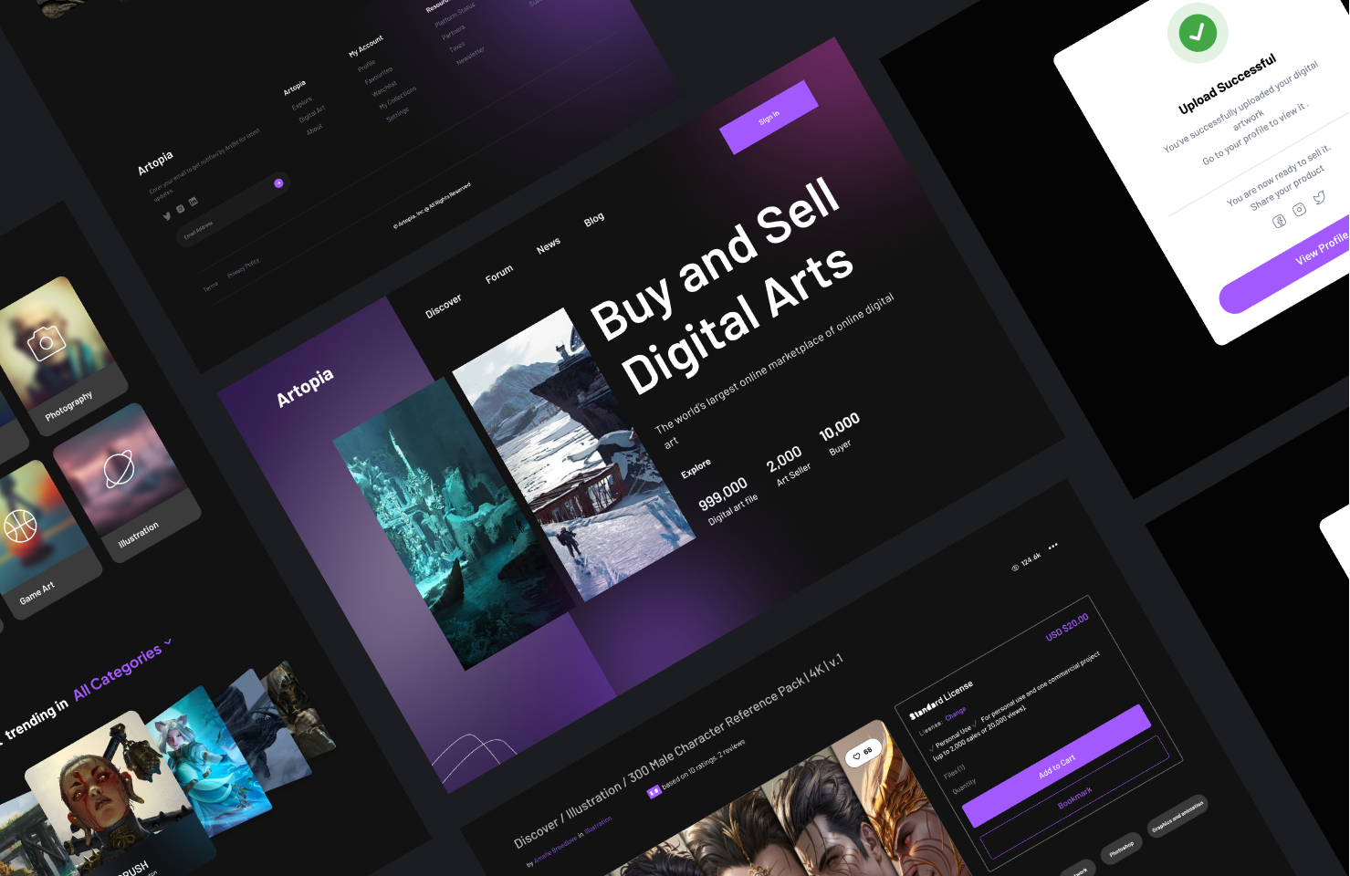 Users can explore a diverse collection of digital art, including illustrations, digital paintings, and multimedia pieces. This marketplace provides a platform for artists to connect with art enthusiasts and potential buyers.